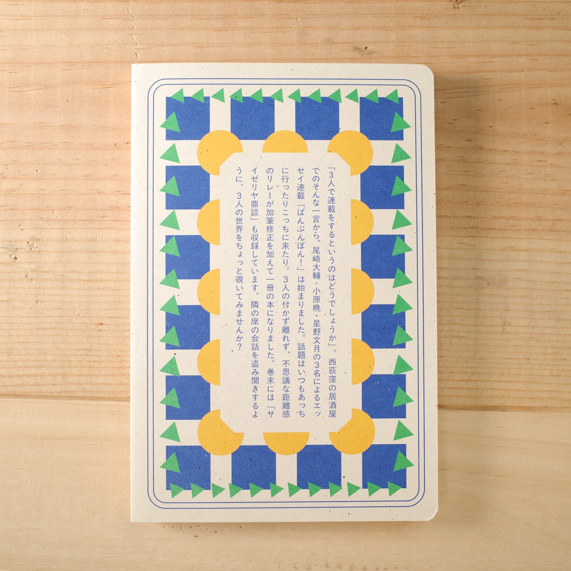 小原晩・尾崎大輔・星野文月の3人がそれぞれ書きたいテーマを持ち寄って、銘々思うように綴ったエッセイ集。巻末には「サイゼリヤ鼎談」も収録しています。