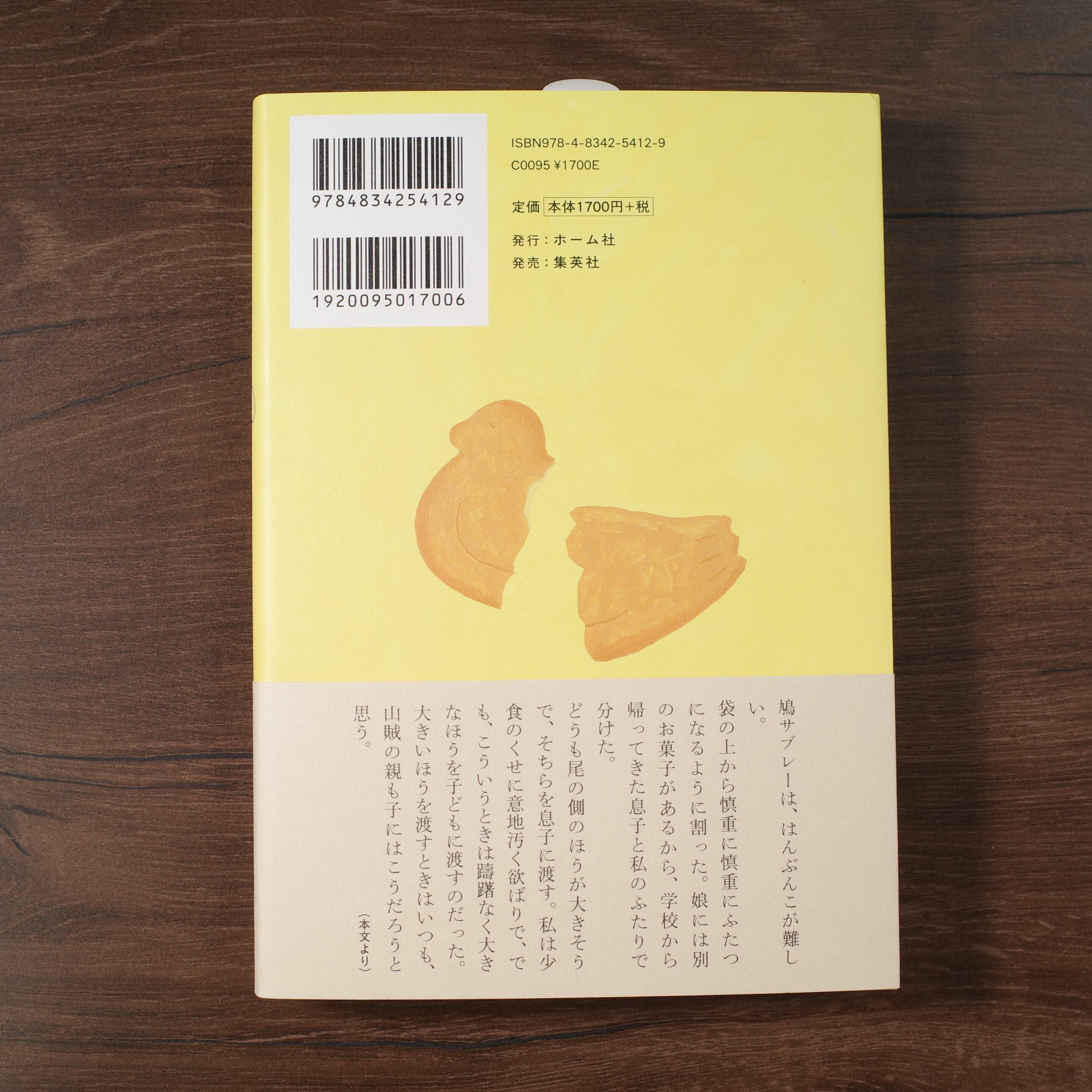 「鳩サブレーは、はんぶんこが難しい。袋の上から慎重に慎重にふたつになるように割った。娘には別のお菓子があるから、学校から帰ってきた息子と私のふたりで分けた。どうも尾の側のほうが大きそうで、そちらを息子に渡す。私は少食のくせに意地汚く欲ばりで、でも、こういうときは躊躇なく大きなほうを子どもに渡すのだった。大きいほうを渡すときはいつも、山賊の親も子にはこうだろうと思う。」