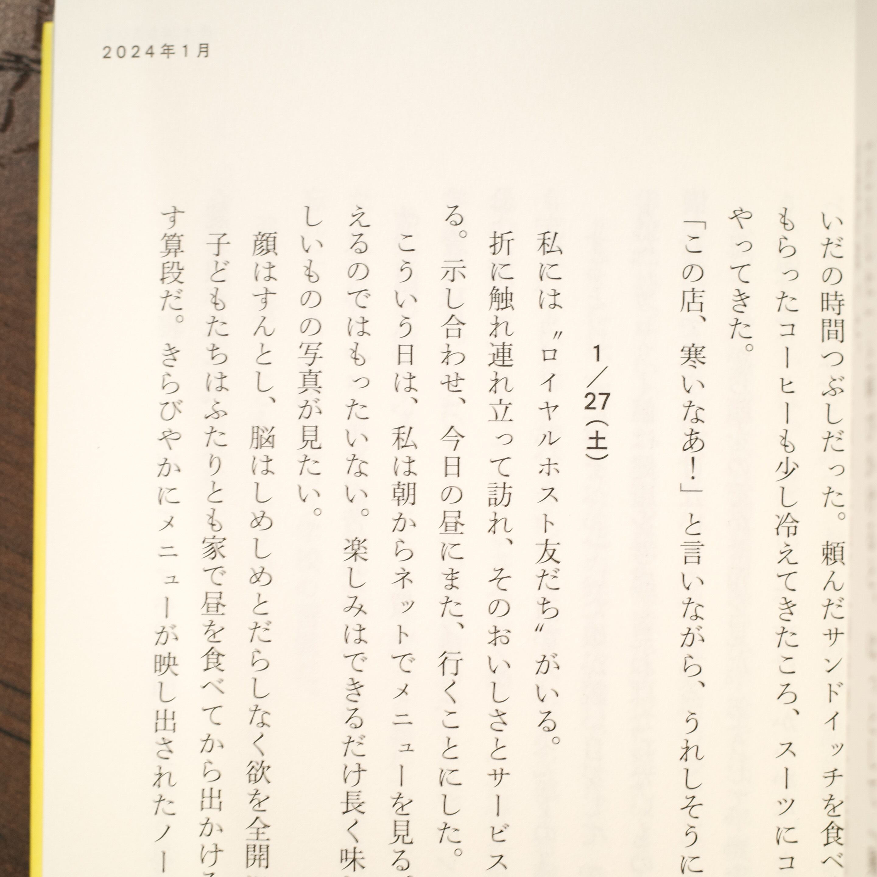 「冷奴を生姜ではなくわさびで食べようと食卓に出したら、息子が白いご飯にわさびをのせて醤油をかけ、『海鮮丼の瞬間の味』と言って味わっており、私も真似した。海鮮丼そのものの味はしない。けれどたしかに、瞬間の味はする。」(本文より)
