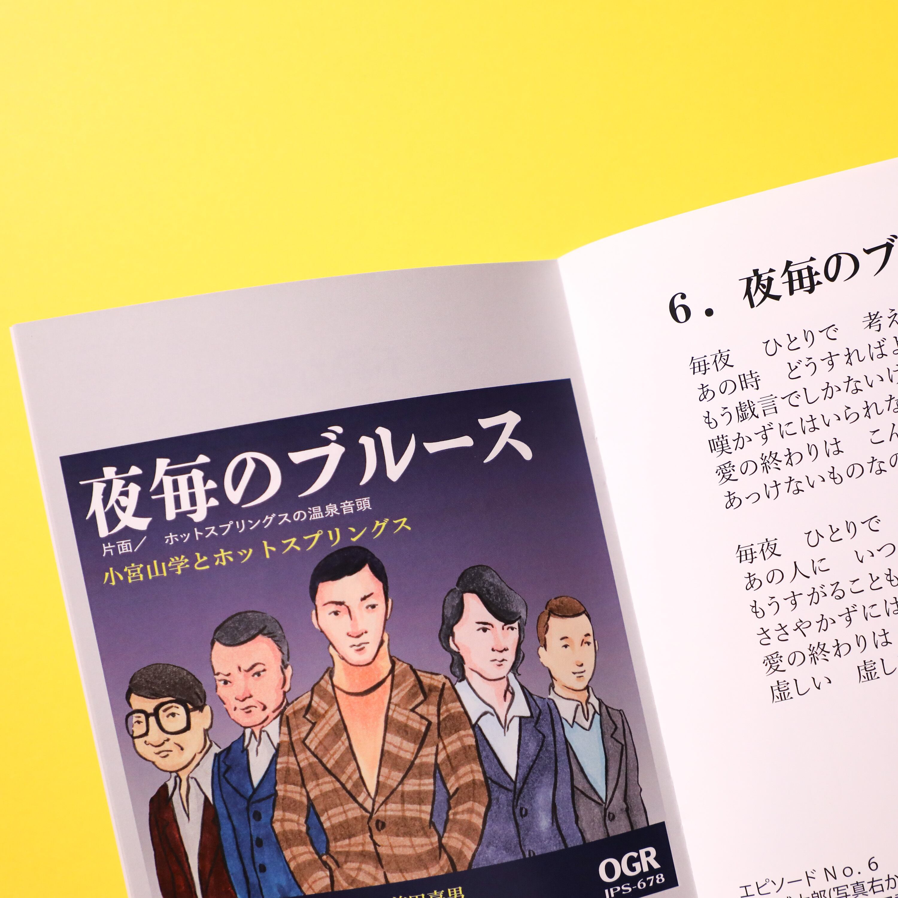 架空の昭和のムード歌謡グループ「小宮山学とホットスプリングス」のベスト盤をイメージした歌詞カードです。グループの活動歴やエピソードも交えた読み応えのある一冊!